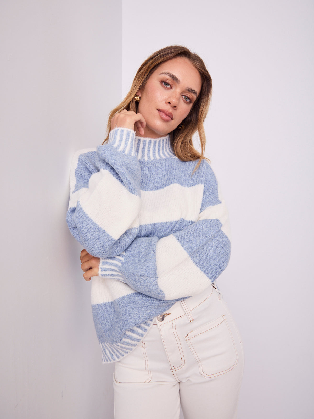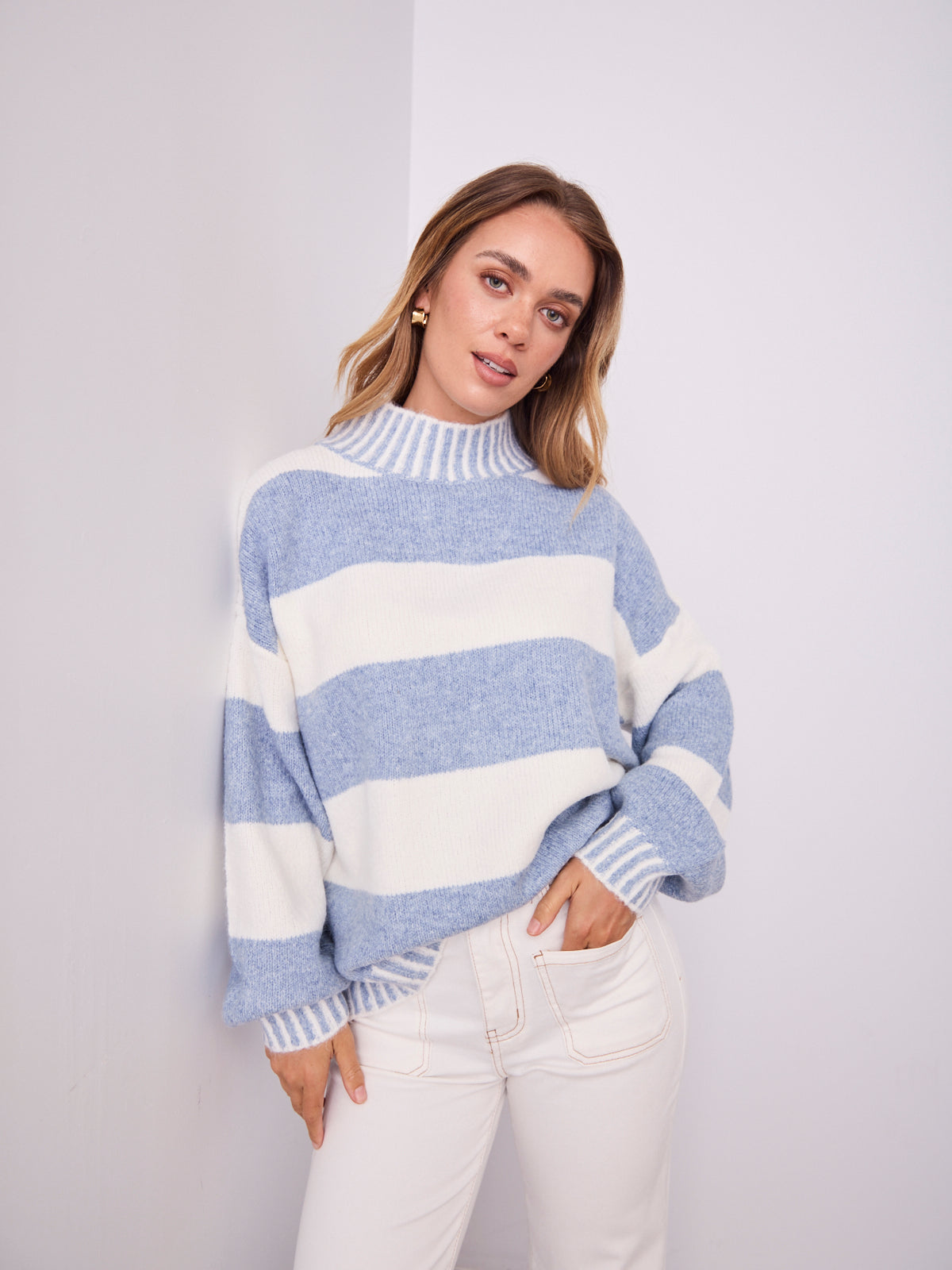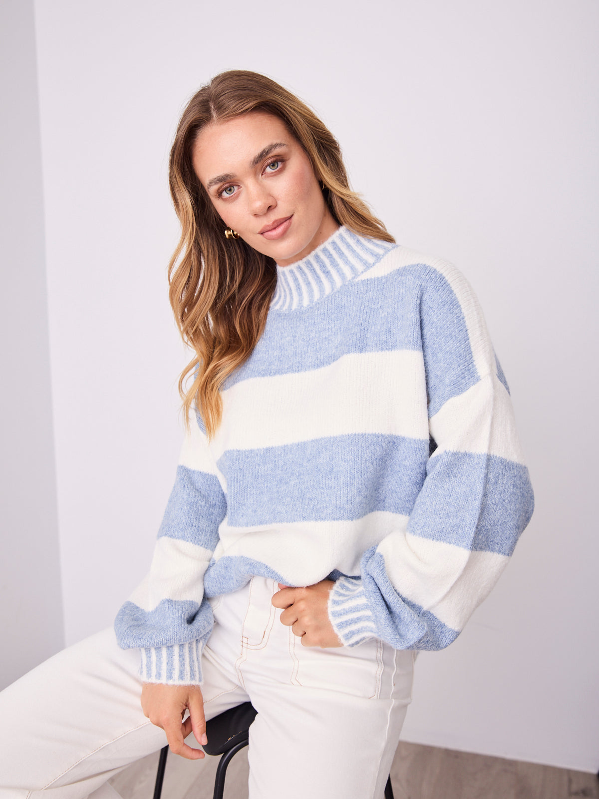 BESSIE BLOCK STRIPE KNIT - BLUE/WHITE